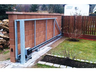 Posuvné brány vyrábíme buď jako nesené na kolečku s kolejnicí, která je ukotvena do betonového podkladu vjezdu, nebo samonosné vedené v "C" profilu.